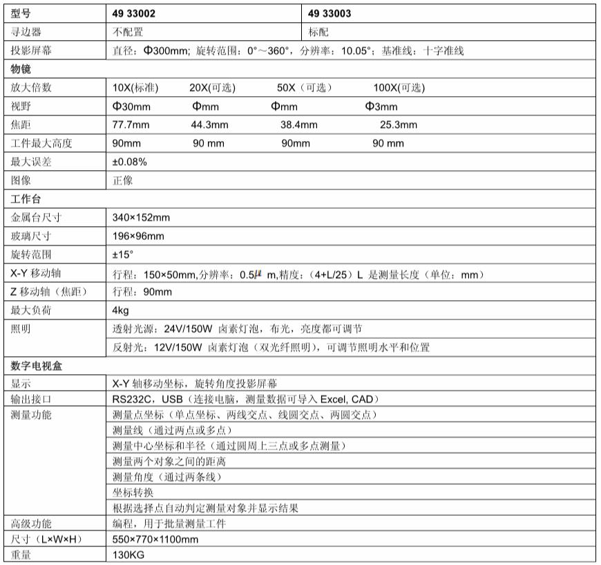 行程:150×50mm.分辨率:0.5μm.精度:(4+L/25)L是测量长度(单位: mm)