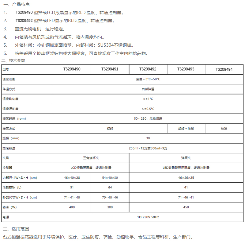 温度范围室温+3~50℃内部容积66L