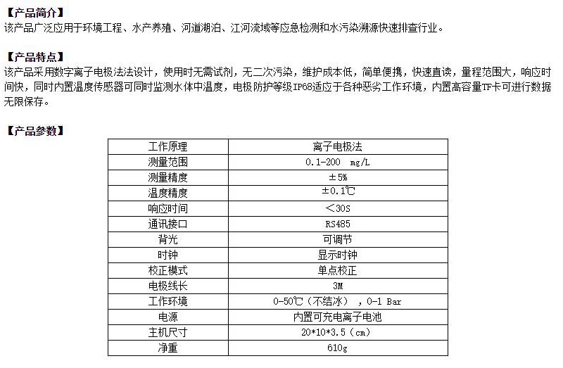 ·该产品电极采用数字信号代替模拟信号,测量精准,无干扰;电极防水等级达到IP68可适应于各种恶劣的环境,适应满量程电导率的测量,数字通讯接口,具有响应时间快,读数稳定,不受极化影响等特点。标准配置:主机,双光路数字电极,便携箱,充电器