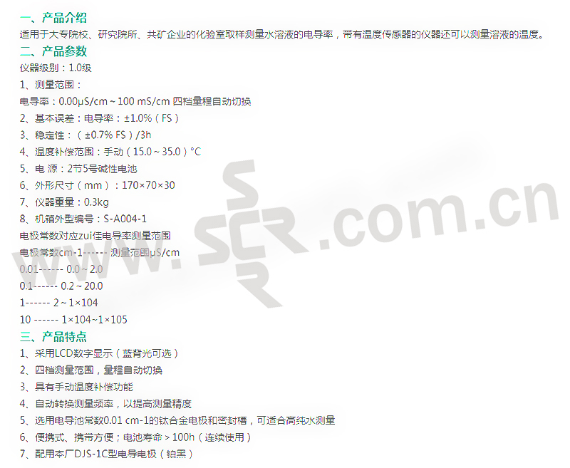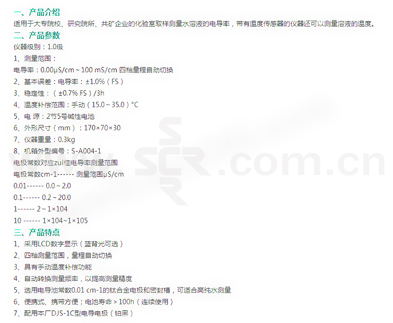 LEICI/雷磁 便携式电导率仪 DDB-303A 0.00μS/cm~100 mS/cm 四档量程自动切换 1台