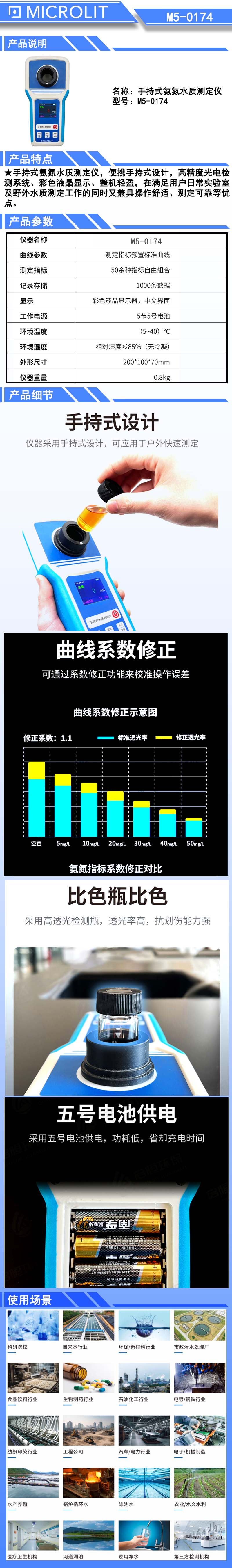 手持式氨氮水质测定仪,便携手持式设计,高精度光电检测系统、彩色液晶显示、整机轻盈,在满足用户日常实验室及野外水质测定工作的同时又兼具操作舒适、测定可靠等优点。