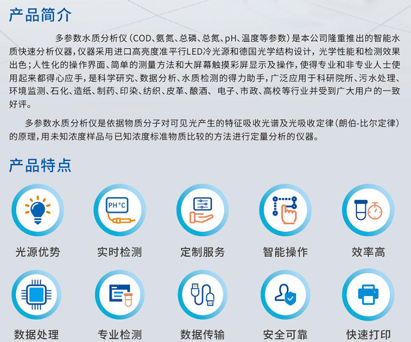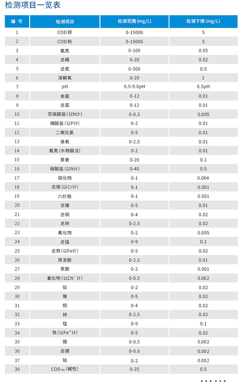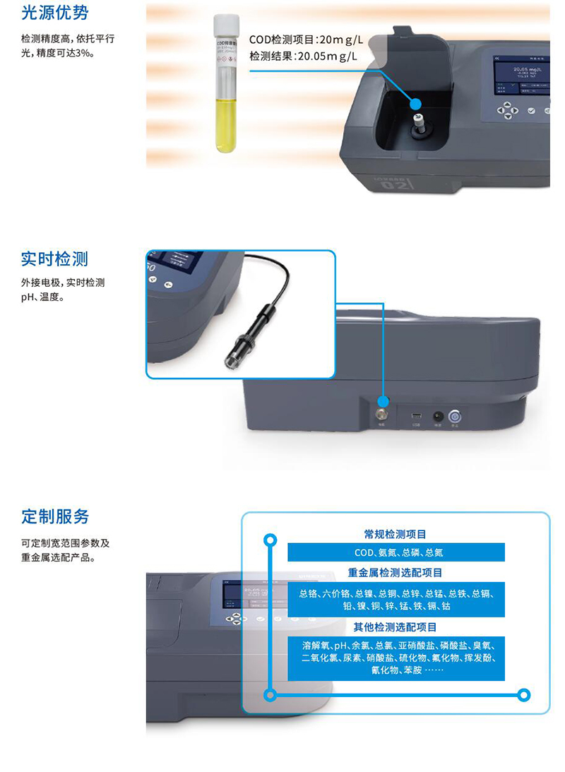 COD:0.00~370mg/L 溶解氧:0~20mg/L 氨氮0~100mg/L
