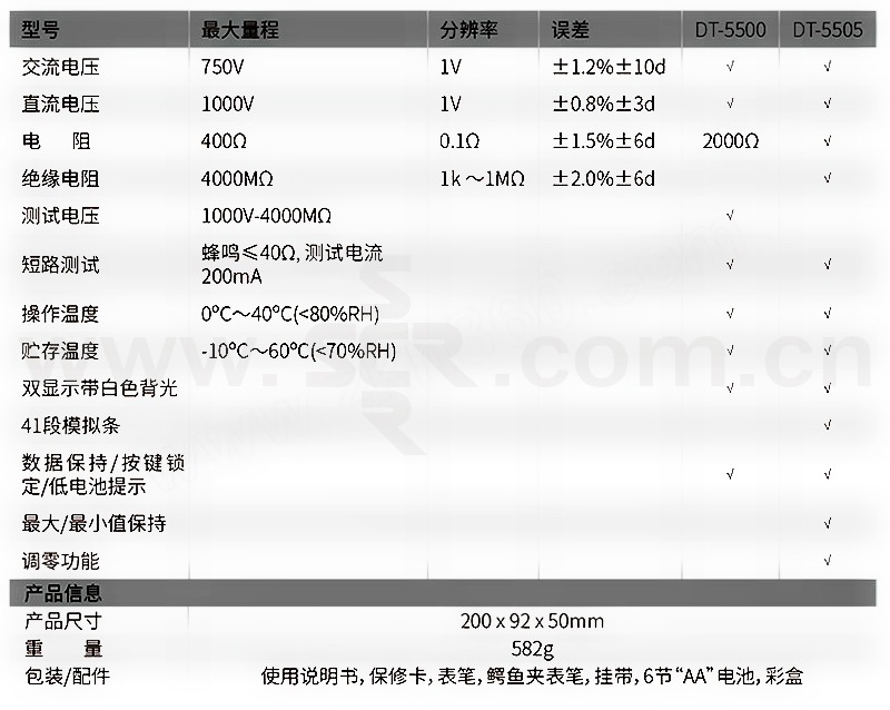 ·DC1000V,AC750V电阻最大4000MΩ双注塑机壳CATIII1000VDC电压精度±0.8%AC电压精度±1.2%最大、最小值保持归零功能