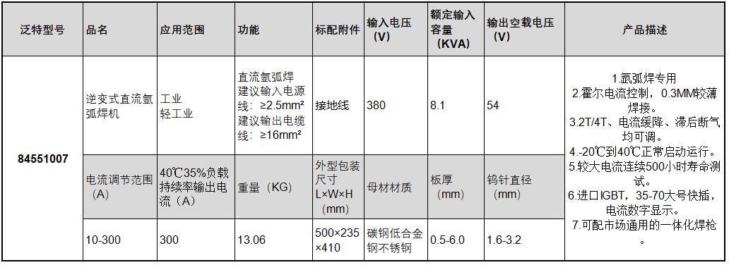 A32824 84551007 接地线 380V 8.1KVA 54V 10-300A 300 A 13.06KG 500×235×410mm 碳钢低合金钢不锈钢 0.5-6.0mm 1.6-3.2mm 5115.00