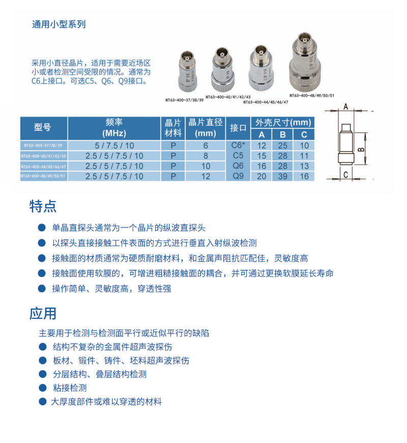 英文名称:  通用小型单晶直探头