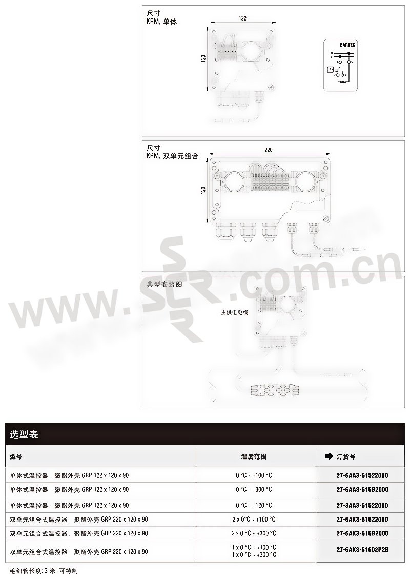 BARTEC/博太科 机械式温控器 KRM-16A 220VAC 20A 1只