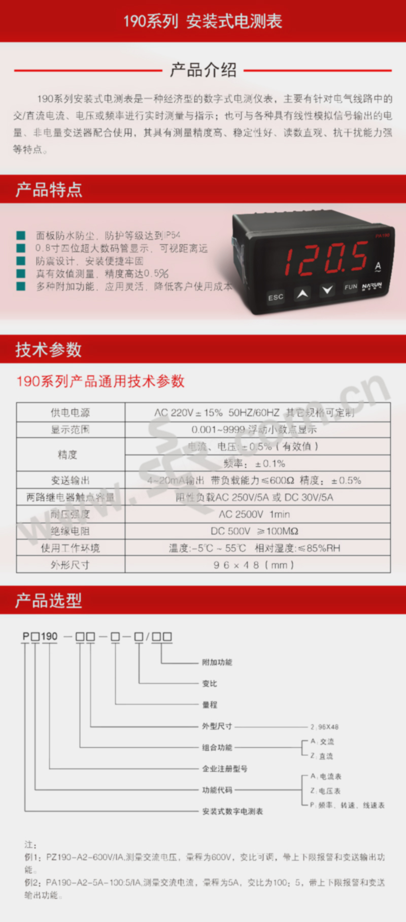 NARUN/纳宇电气 190(DS)系列LCD安装式电测表 PA190-A2-1A 1A 1台