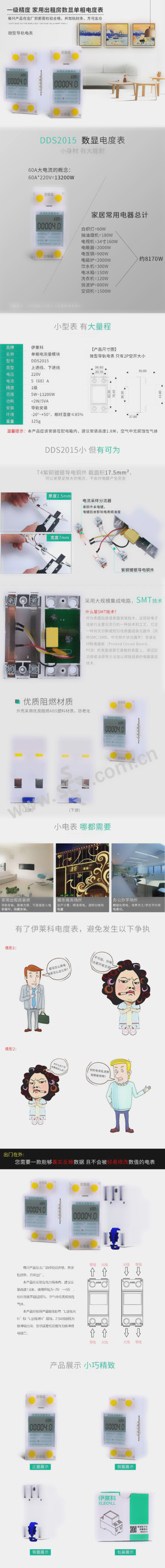 ELECALL/伊莱科 家用电度表 DDS2015 触屏上进线 1只