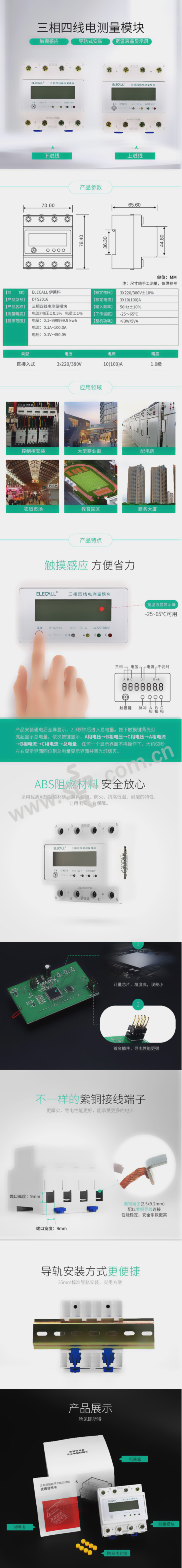 ELECALL/伊莱科 三相四线数显电度 3×10 100A 下进线 1只