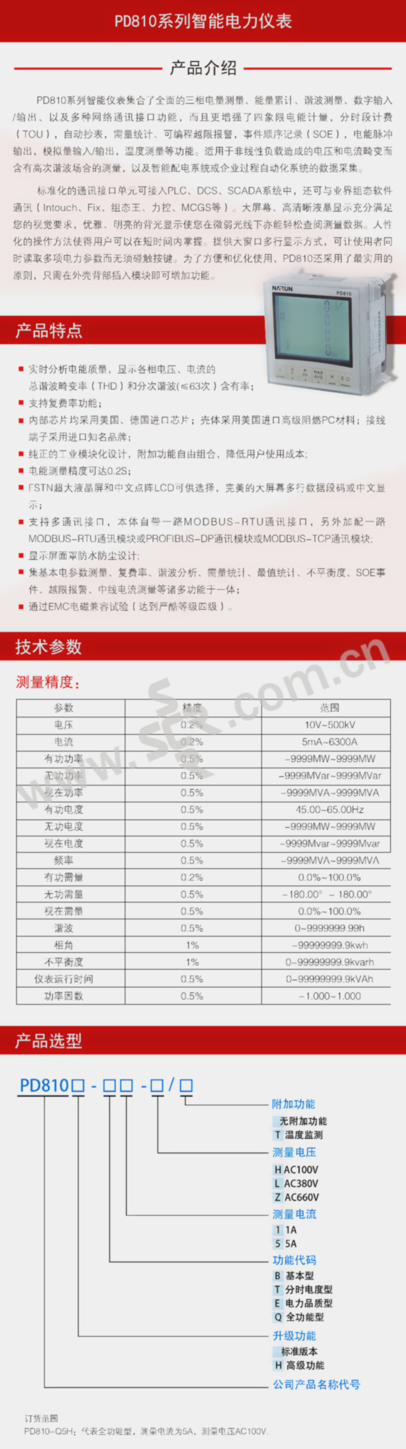 NARUN/纳宇电气 PD810系列智能电力仪表 PD810-T(DS) 分时电度型 1台