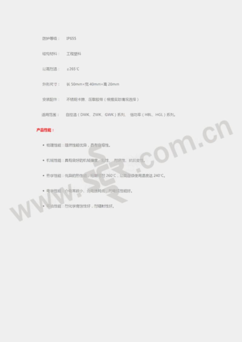 ·物理性能:阻燃性能优异,具有自熄性