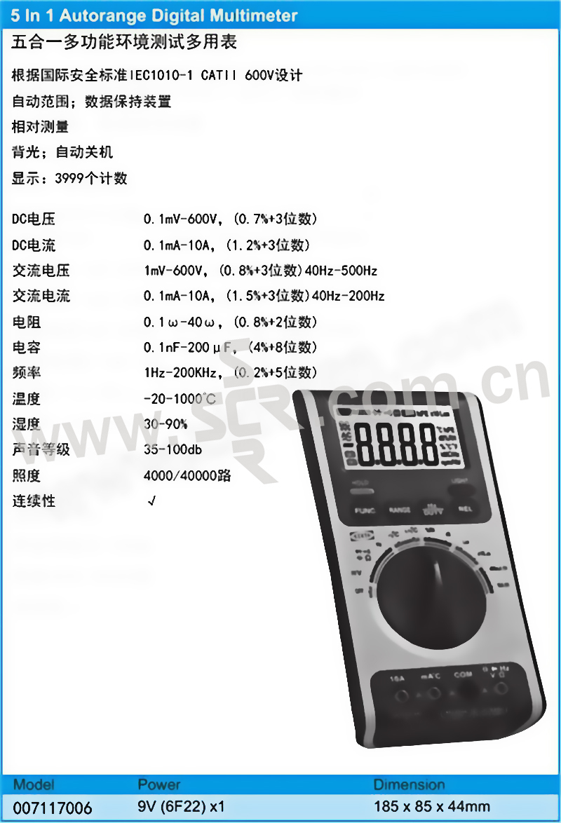 五合一多功能环境测试多用表 007117006 185×85×44mm 1把