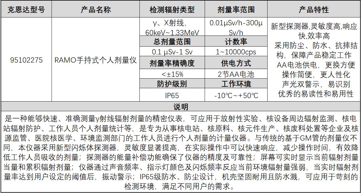 RAMO手持式个人剂量仪 95102275 60keV~1.33MeV 1台