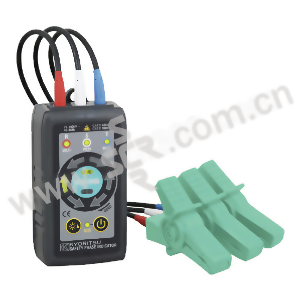 ·新工艺确保安全测试,无需直接接触探棒和通电回路。 ·绝缘鳄口夹可夹住直径2.4~30mm的绝缘电线。 ·旋转照明LED和蜂鸣提示可了解相位旋转。 ·仪器可通过背面的磁铁固定在金属板上。 ·三相测试的宽广范围(70~1000V AC)。 ·设计符合国际安全规格,EC61010-1 CAT.IV 600V/CAT.III 1000V。