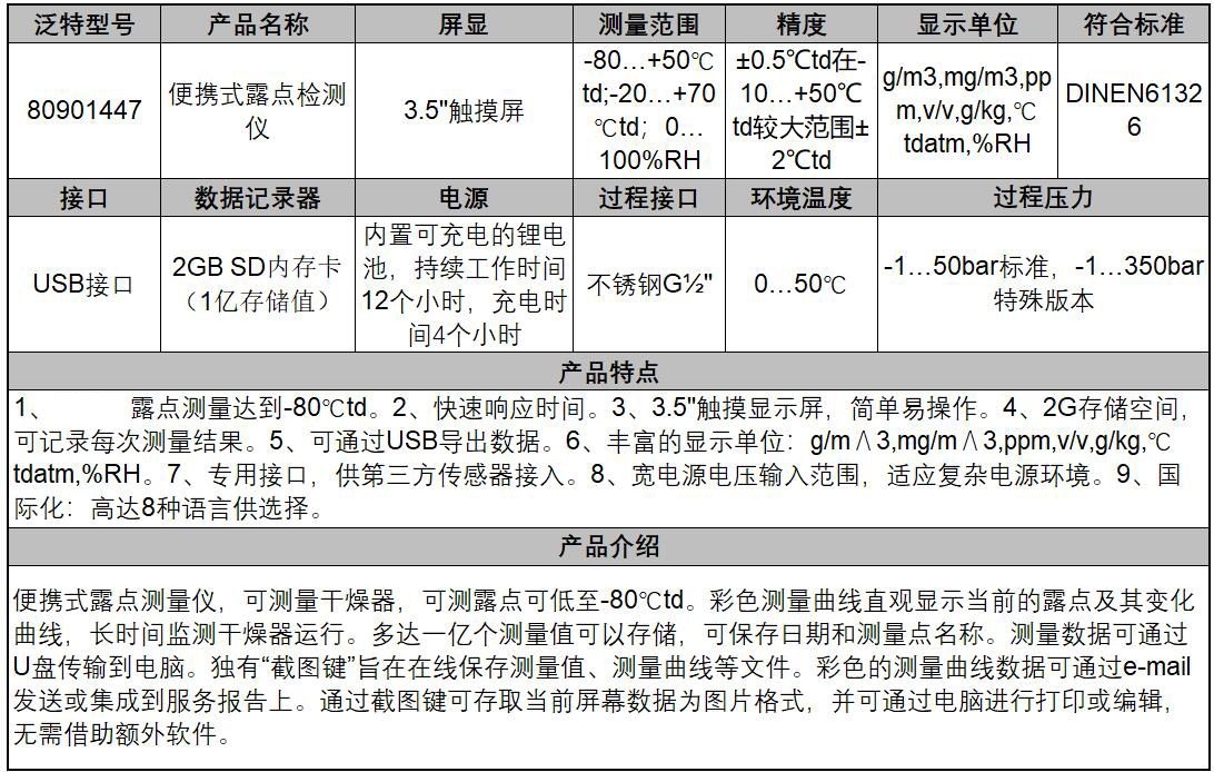 规格:  -80…+50℃td;-20…+70℃td;0…100%RH 制造商型号:  80901447