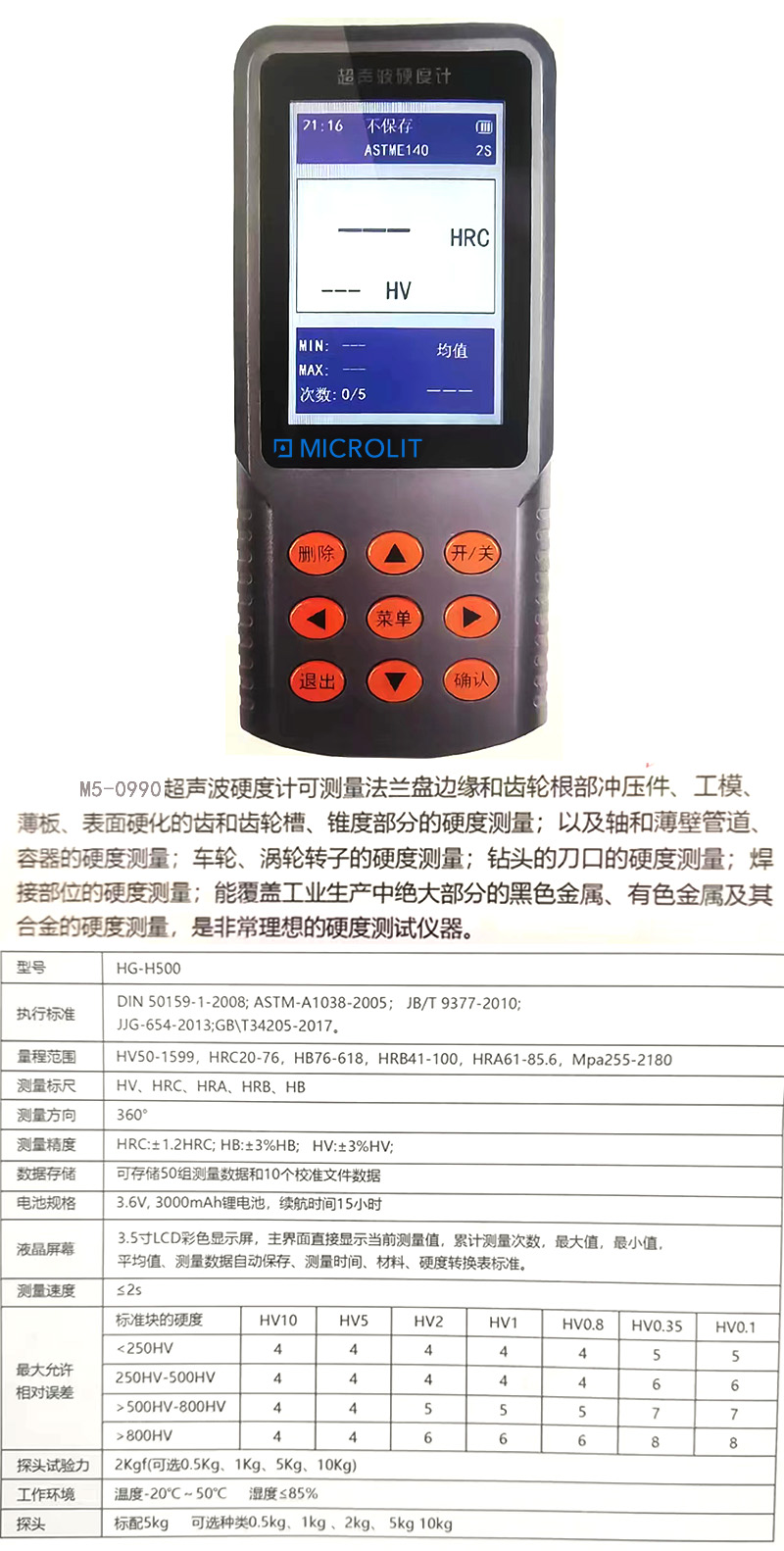 *可外接蓝牙打印机打印测量数据(可选)或者连接电脑超级终端导出测量数据。 *压痕比里氏硬度计更小,需要用高倍显微镜才能观察到。 *根据不同弹性模量的材料采用一点校准消除弹性模量的影响,达到测试精度。 *由于硬度转换表的各硬度制的转换误差、工件厚度、工件表面的粗糙度、工件内部受液体流动影响所带来的测量误差,采用多点校准。直接校准HRC、HRB HRA HB HV 等硬度值。