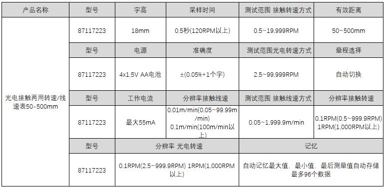 测试范围 接0.05~1,999.9m/min 触线速方式