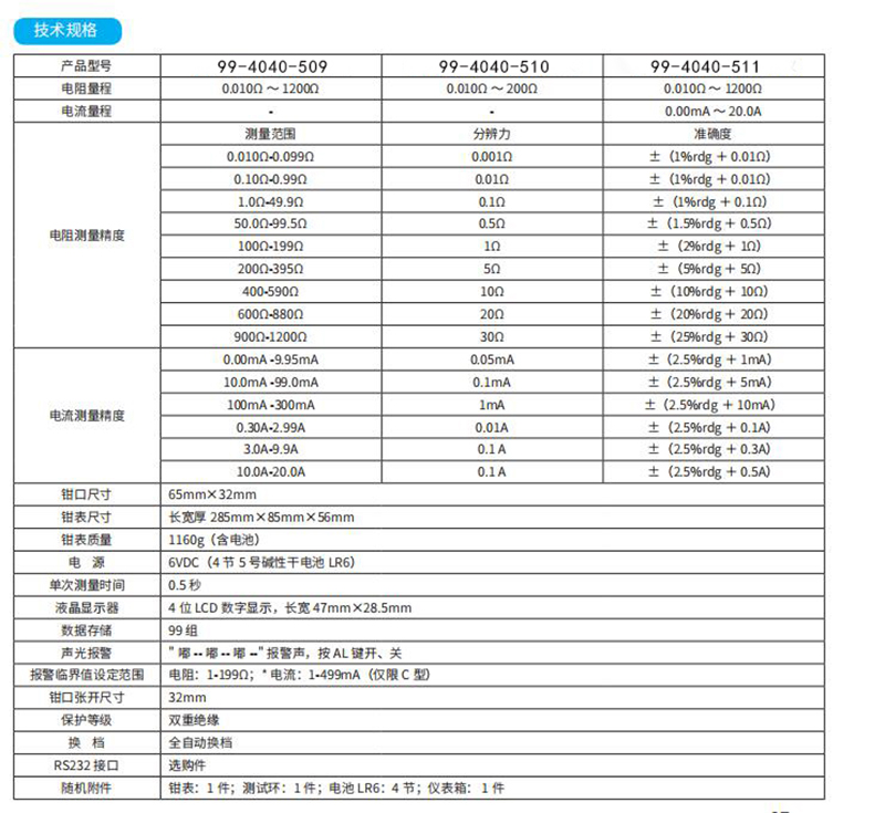 C70159 99-4040-512 0.010~1200Ω 钳口尺寸φ32mm 3300.00