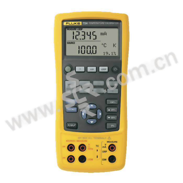 ·Fluke724是大师级的温度校准方案。Fluke724可以测量和输出10种热电偶类型和7种铂电阻类型,以及电压和电阻信号。·Fluke724还可以处理高速脉冲RTD电路,并提供回路电源。·测量/输出双显示,您可同时输出温度和观察回路电流。·简单的“无菜单”控制方式,使724操作非常简单。