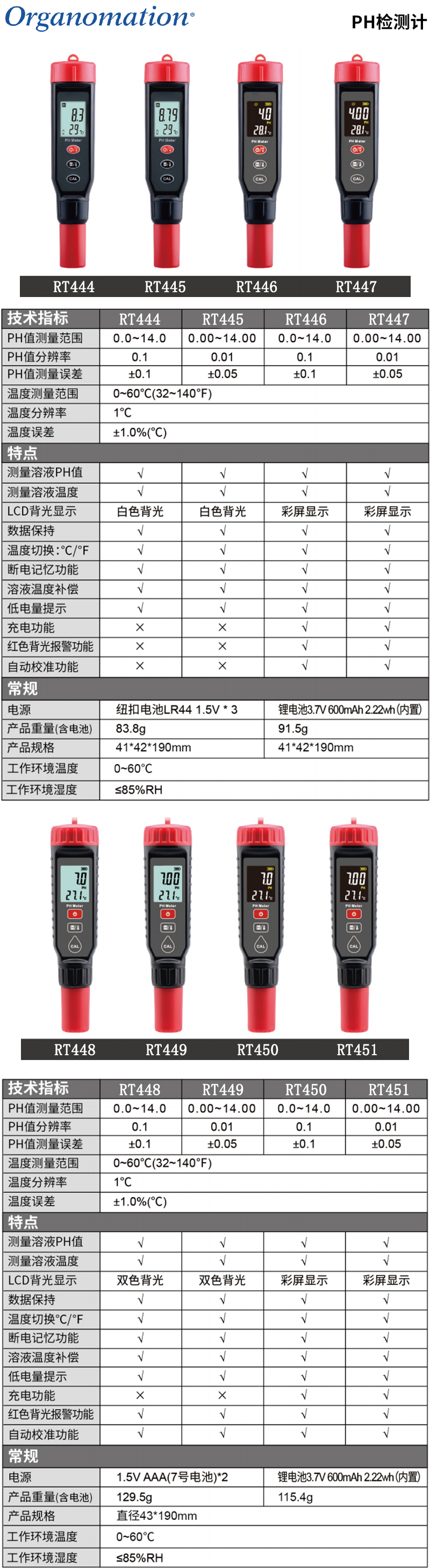 温度测量范围:0~60℃(32~140℉)