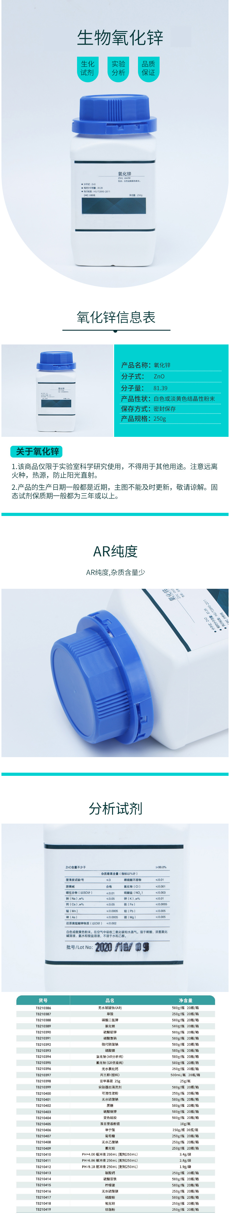 H60260 TS210418 250g/瓶 氧化锌 75.00