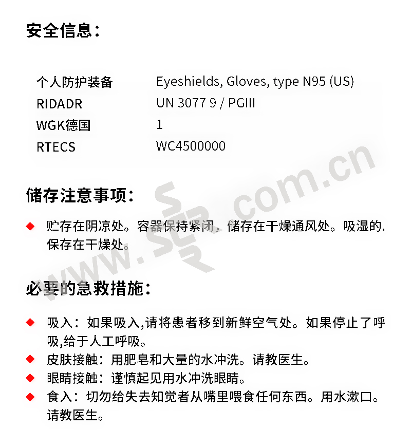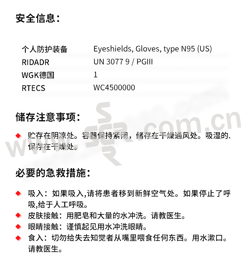 ·性状:白色结晶性粉末。易吸湿。久置空气中能吸收2~7mol水。热至240℃分解成焦磷酸钠。溶于约8份水、更多溶于热水、不溶于乙醇、1%水溶液在25℃时pH为9。1。最小致死量(大鼠、腹腔)1000mg/kg。