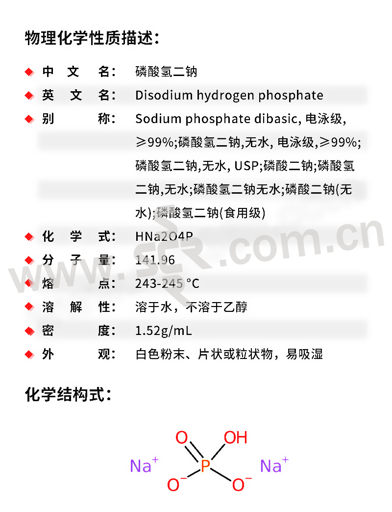 ·英文名称:Disodiumhydrogenphosphateanhydrous