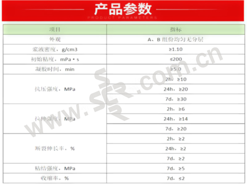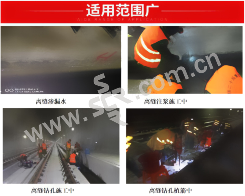 ·早强快固,改性后的环氧灌浆材料,2h抗压强度可达40MPa以上,在列车通行前即可超过混凝土本身的强度,特别适用于轨道板离缝灌浆。·2、操作时间适中,不爆聚。该改性环氧灌浆材料·3、水中固化效果好。改性后的环氧灌浆材料·4、环保性好,气味低。产品均采用无毒、低气味的原材料,且体系中无不反应组份,对人体、环境无损害