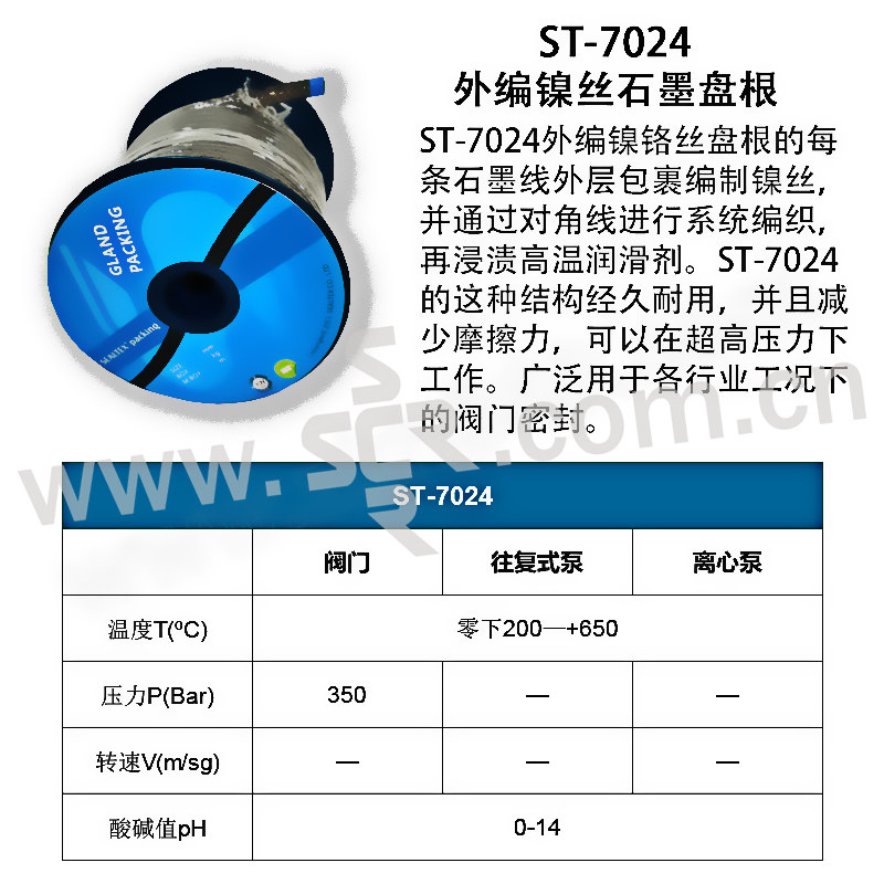 SEALTEX/索拓 玻纤加石墨外绕镍铬丝盘根 ST-7024 5kg 1盒