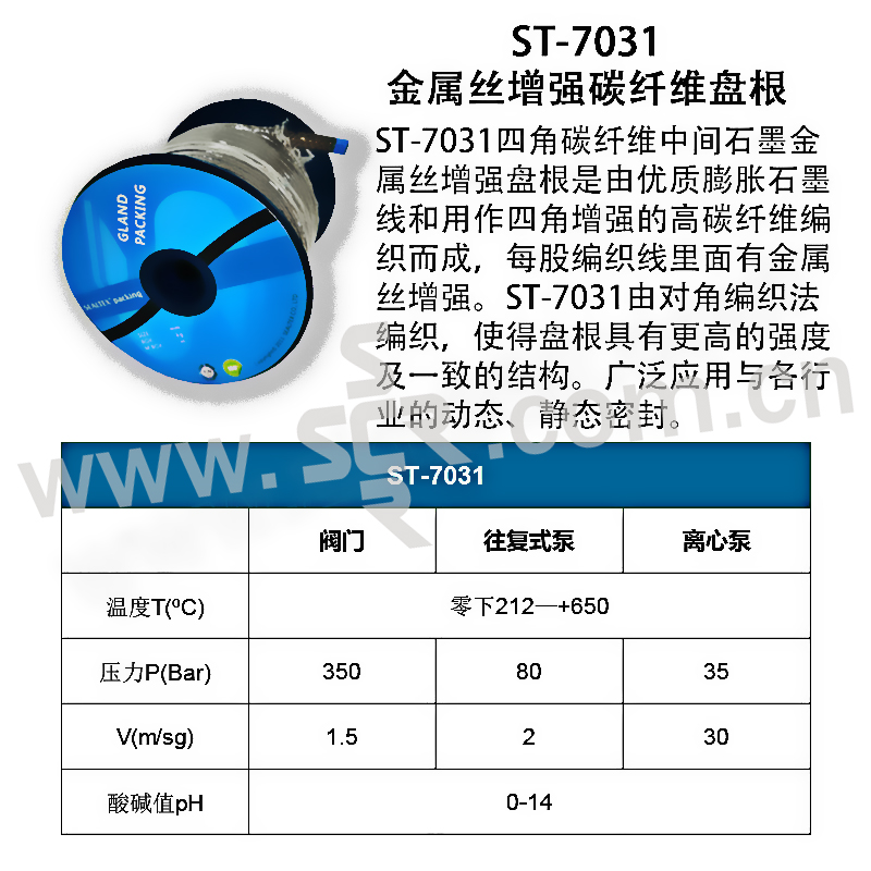 SEALTEX/索拓 金属丝石墨增强四角碳纤维盘根 ST-7031 5kg 1盒