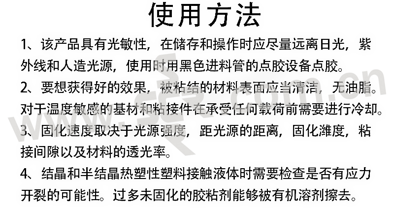 ·快速固化:暴露于足够强度的紫外线和可见光下会快速固化。