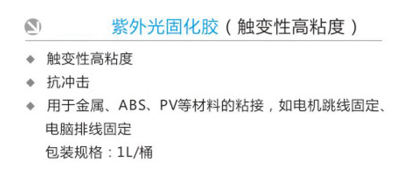 ·触变性高粘度 ·抗冲击 ·用于金属、ABS、PV等材料的粘接,如电机跳线固定、电脑排线固定