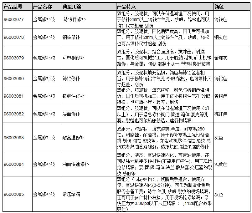 ·双组分(同芯结构),切断后手捏合,使用方便,室温快速固化(3-5分钟), ·可作为制造业售后服务必备工具; ·铸件.气孔.砂眼.裂纹的现场堵漏,还可用于多种材料粘接,用于现场抢修堵漏; ·系统压力为0.3Mpa以下带压堵漏(与1128配合效果更佳)