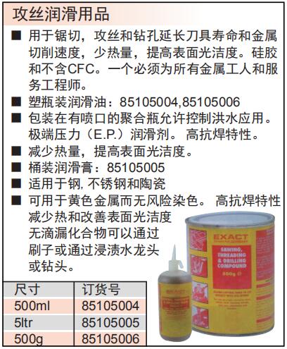 ·用于锯切,攻丝和钻孔延长刀具寿命和金属切削速度,少热量,提高表面光洁度。硅胶和不含CFC。一个必须为所有金属工人和服务工程师。