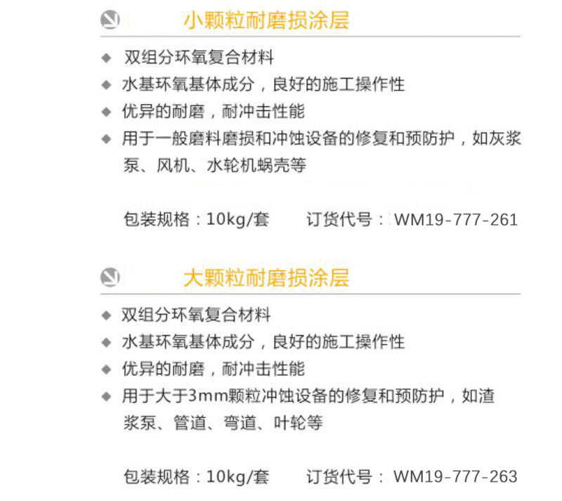 ·用于大于3mm颗粒冲蚀设备的修复和预防护,如渣浆泵、管道,弯道、叶轮等