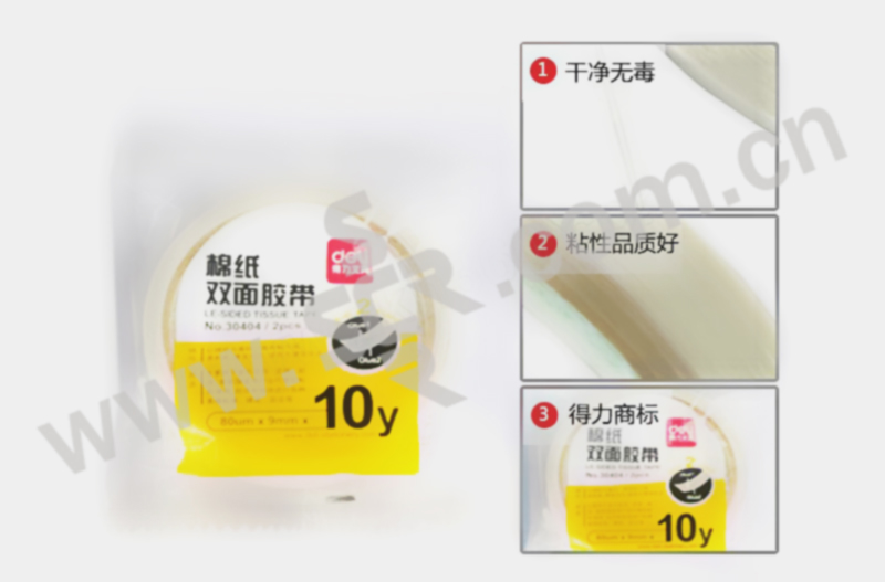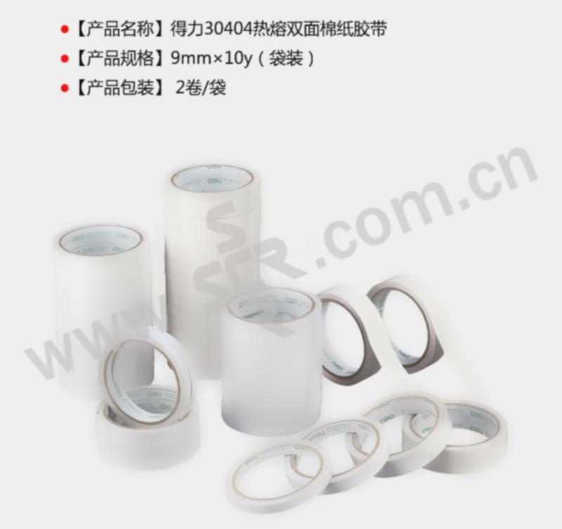 DELI/得力 棉纸双面胶带 30404 10y×9mm 白色 2卷装 1袋