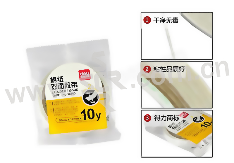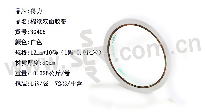 DELI/得力 棉纸双面胶带 30405 10y×12mm 白色 1袋