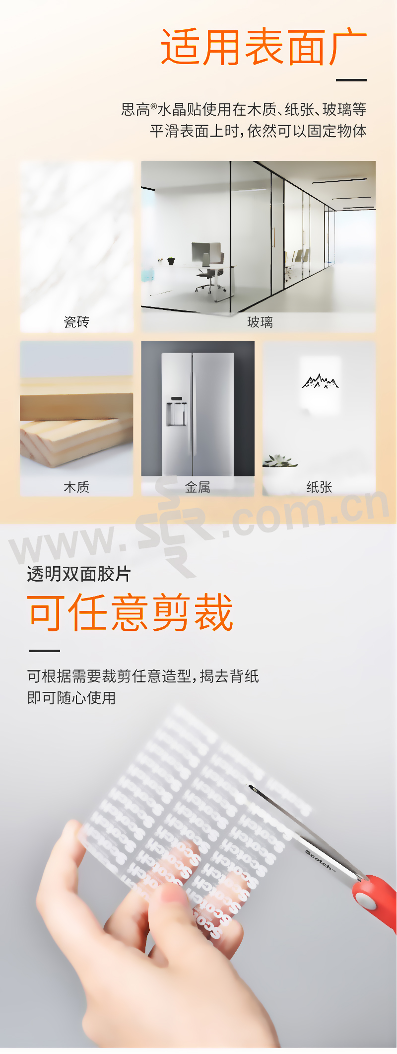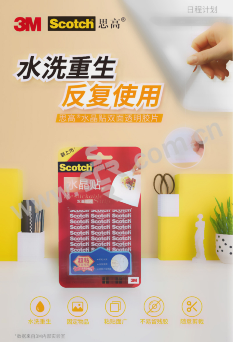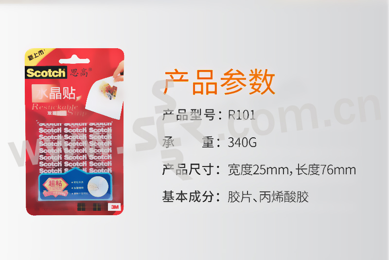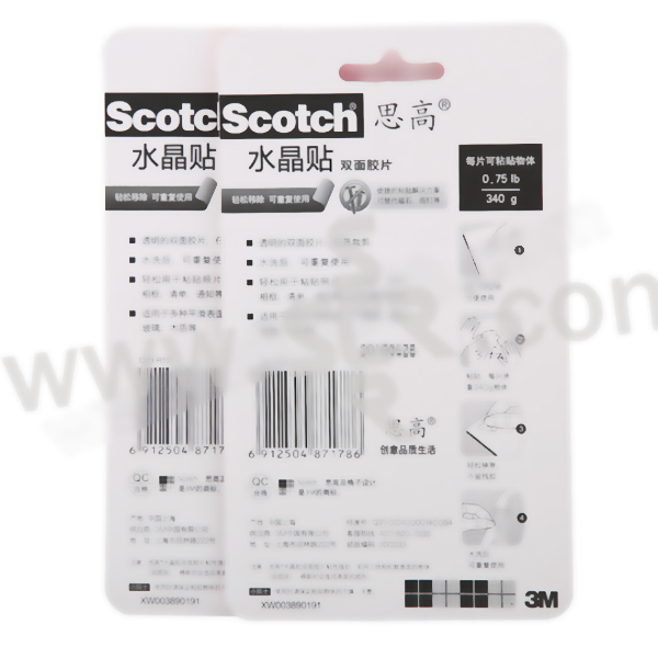 3M 水晶贴双面胶片 思高R101 25×76mm 3片 1包