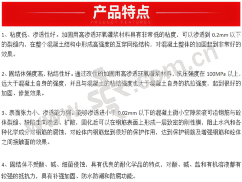 ·表面张力小,渗透能力强,能够渗透进小于0.02mm以下的混凝土微小空隙