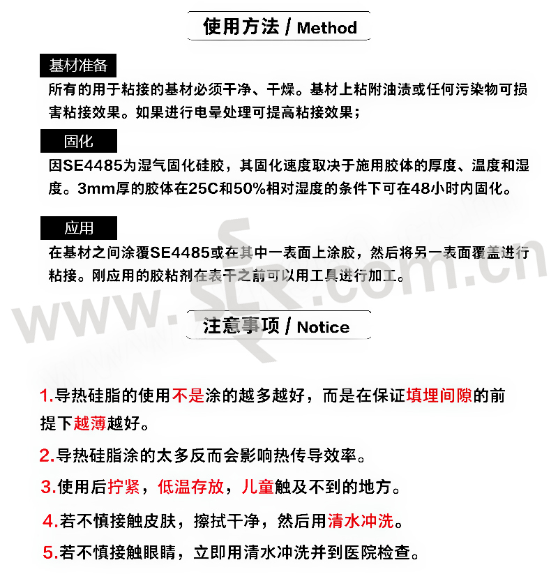 ·低挥发:固化时,气味较小;低挥发性;低毒性。·高导热性:具有高导热性能,适用于需要导热粘接的场合。·脱醇型:固化反应的副产物为醇类,对基材无腐蚀。·快速表干:提高生产效率。·通用性强:对大多数基材都有良好的粘接效果。·阻燃性能:通过UL94-V0阻燃认证。