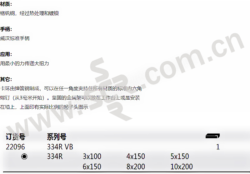 WIHA/威汉 334RVB系列T型内六角扳手套装 WIHA-22096 金属陈列架,6件 3-10mm 镀镍 1套