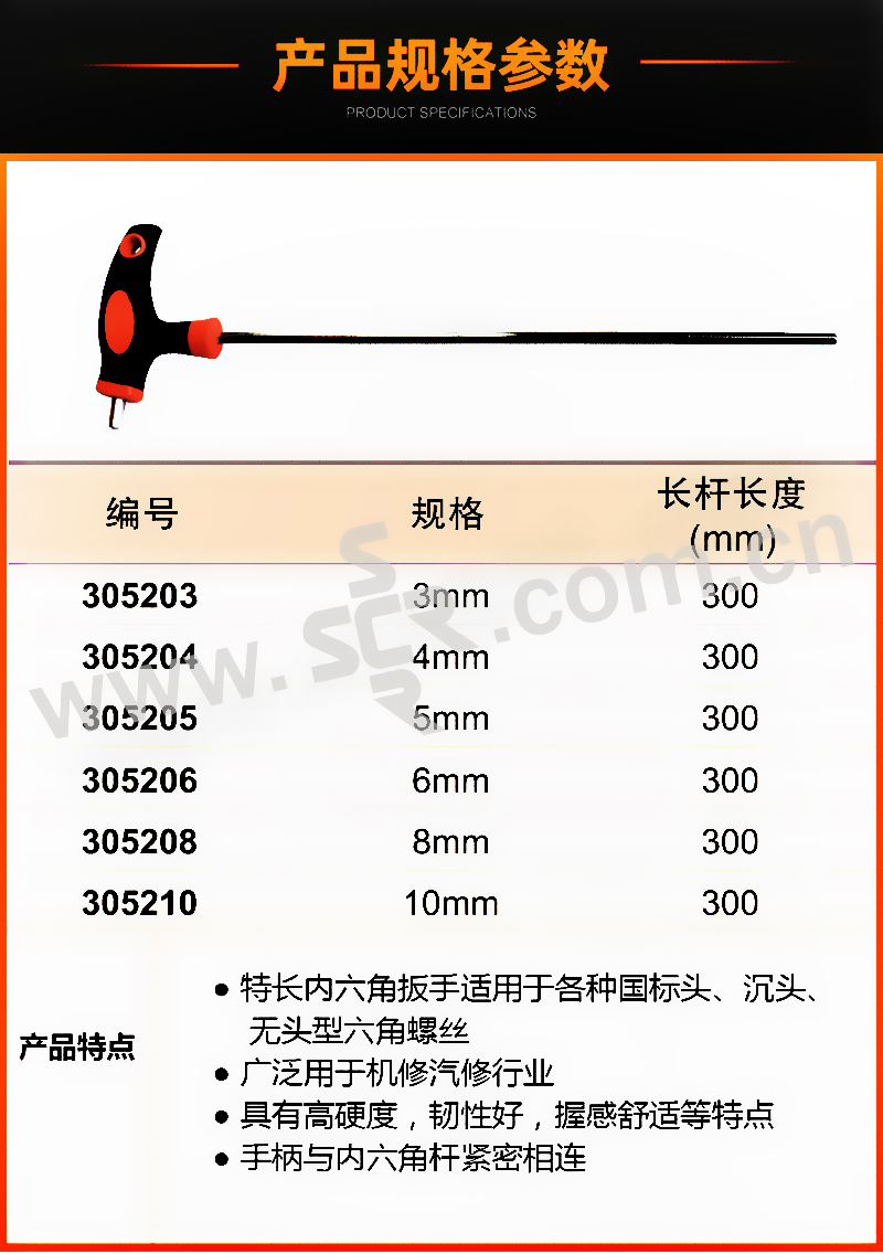 ·特长内六角扳手适用于各种国标头、沉头、无头型六角螺丝