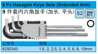 9件套内六角扳手(加长,平头)