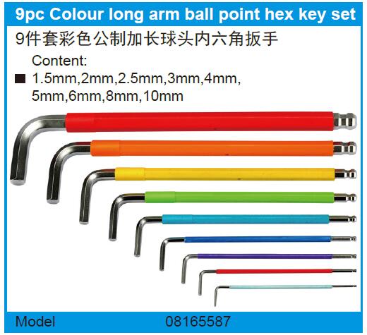 英文名称:  9pc Colour long arm ball point hex key set