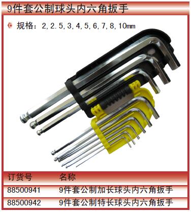 9件套公制加长球头内六角扳手
