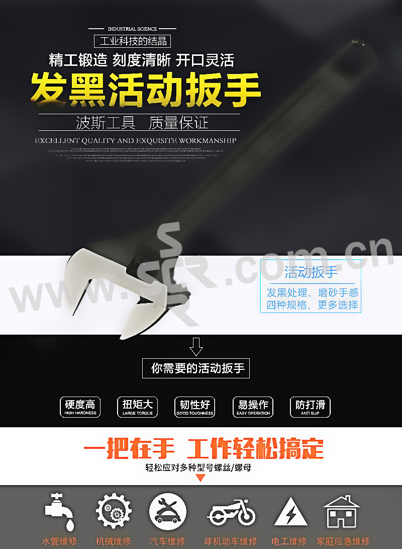 光柄发黑活络扳手