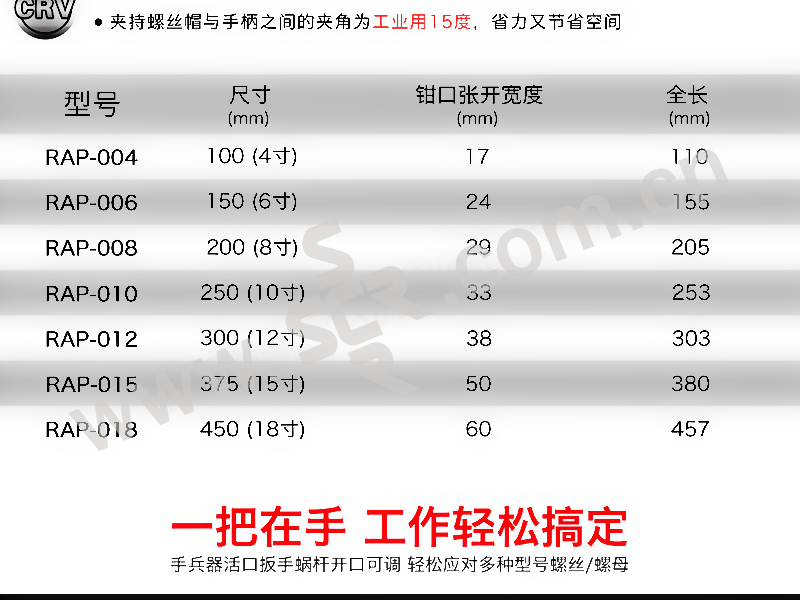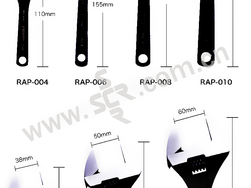 RUBICON/罗宾汉 进口带刻度大开口发黑光柄活动扳手 RAP-004 4" 100mm 开口17mm 1把