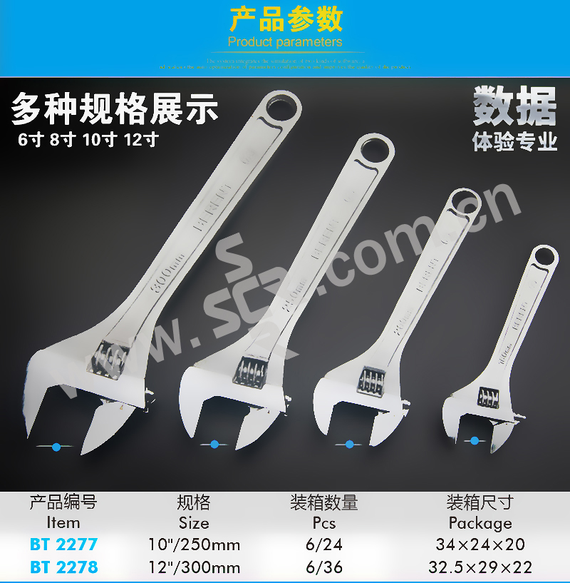 光柄镀铬工业级活络扳手