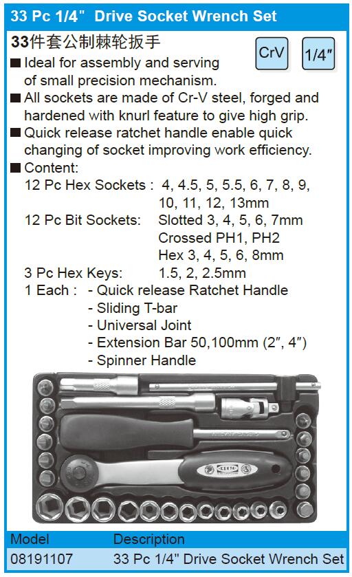 33件套公制棘轮扳手 08191107 14" 1套