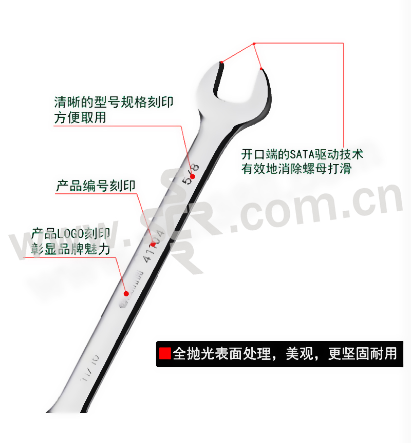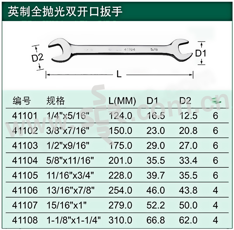 SATA/世达 英制全抛光双开口扳手 SATA-41101 1/4"×5/16" 1把